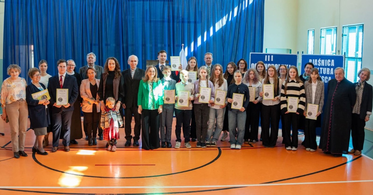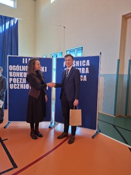 Borys Kocieniewski z klasy IVD 09.04.2026 r. odebrał nagrodę za uczestnictwo w III Ogólnopolskim Konkursie Poezji Uczniowskiej „Piaśnica – kultura miejsca”. Tegorocznym hasłem przewodnim konkursu były słowa ks. infułata Daniela Nowaka – kustosza Sanktuarium Piaśnickiego: