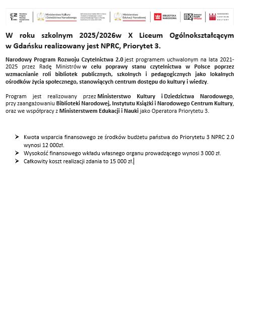 Narodowy Program Rozwoju Czytelnictwa w XLOD - X Liceum Ogólnokształcące
