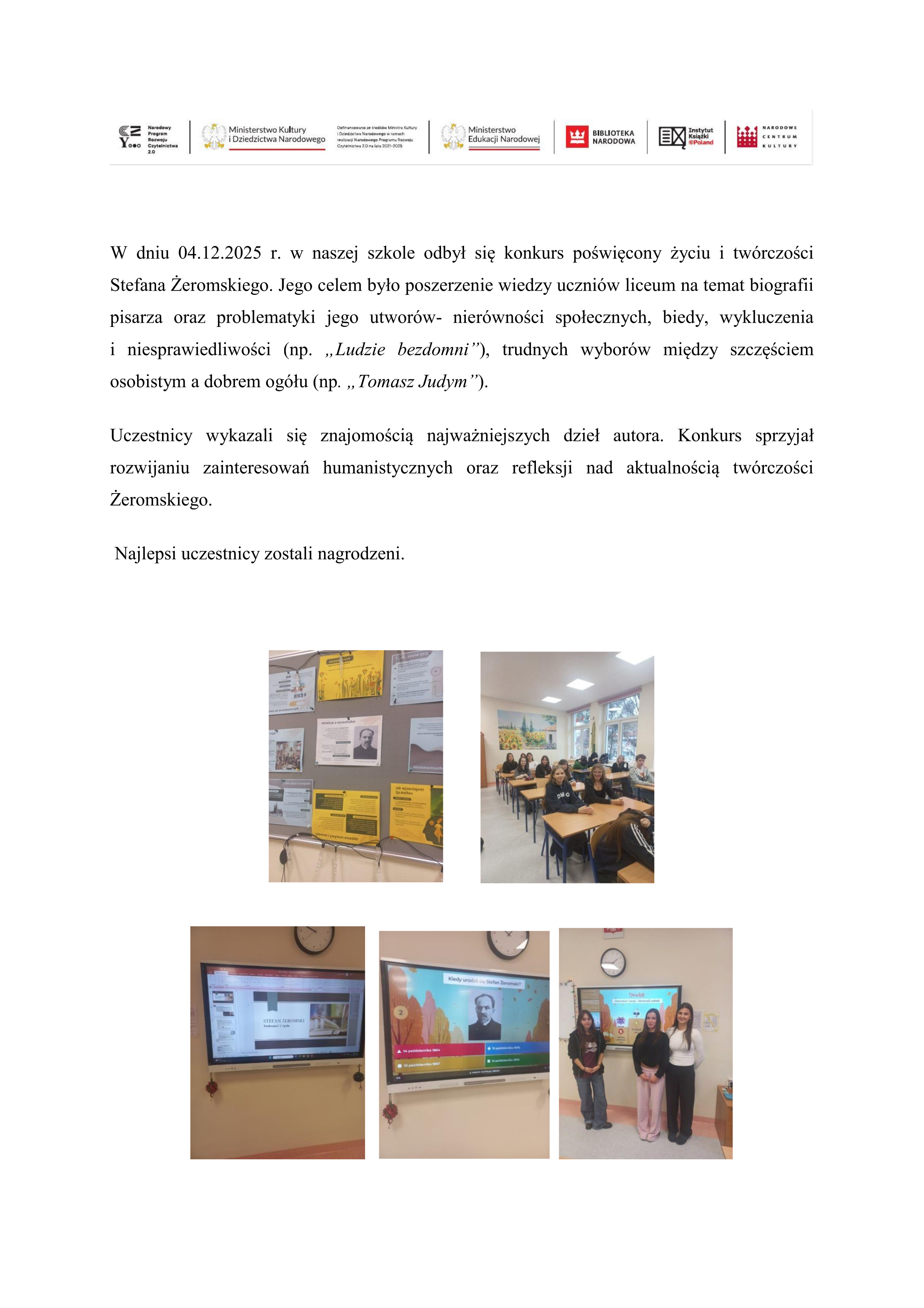 Stefan Żeromski - konkurs - X Liceum Ogólnokształcące